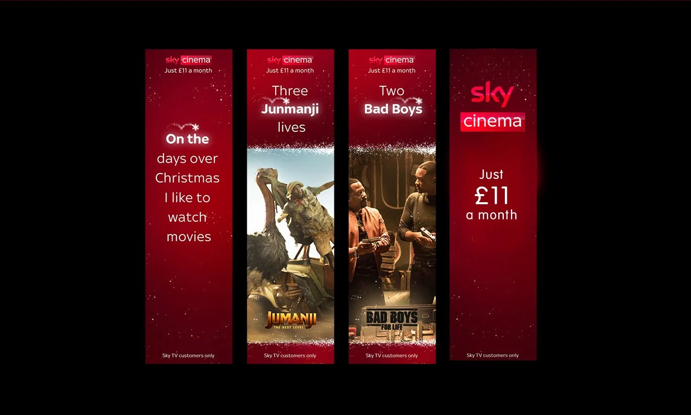 Banners with a twist were created in line with the TVC. They showed off Sky’s great content over the Christmas period via a bouncing snowflake, which prompted remixed words to ‘The12 Days of Christmas’, backed by an accompanying musical jingle.